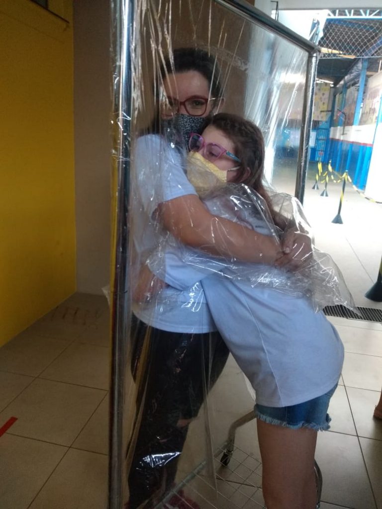 Como parte da comemoração de formatura, na sexta-feira (18), os alunos tiveram a oportunidade de fazer uma despedida diferente na escola (seguindo os protocolos de prevenção à covid) com direito a brincadeiras, piquenique, fotos e autógrafos dos amigos na camiseta que guardarão de lembrança. O dia foi encerrado com chave de ouro com o abraço que puderam dar nos colegas e nas professoras através da cortina do abraço (confira nas fotos) providenciada pel’O Peixinho.