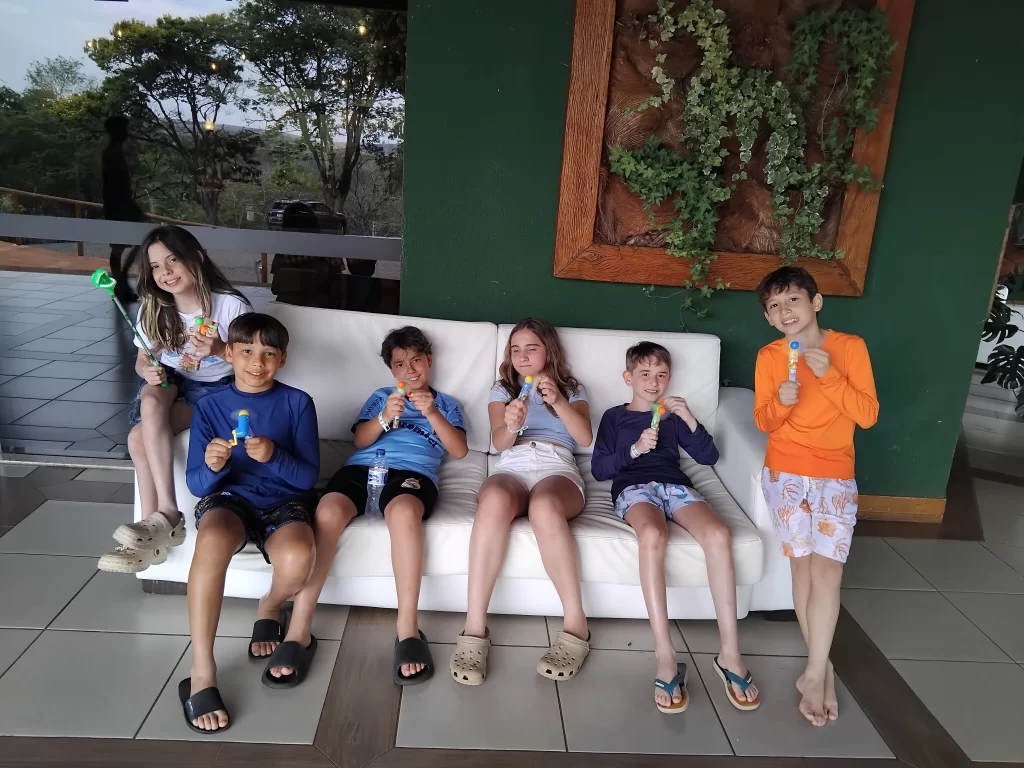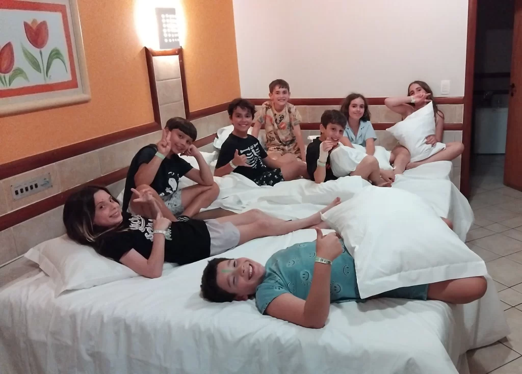 A diversão da noite foi garantida pela Queimada Neon Musical, conduzida pela equipe do resort. “As crianças puderam correr, dançar e brincar; foi uma forma especial de encerrar a programação do dia”, afirma a professora Bethânia Helbe, que também participou da excursão.