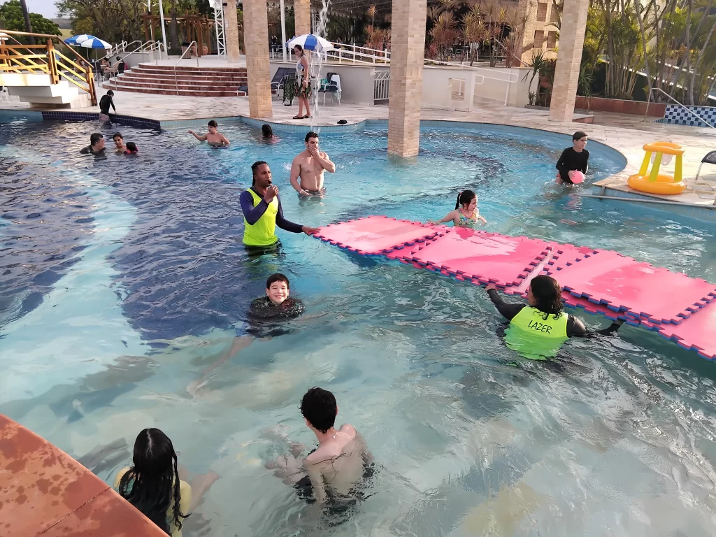 O dia ensolarado estava propício para as crianças aproveitarem os espaços abertos, especialmente o complexo aquático, com toboáguas, escorregador e splash bar. “Foi uma tarde muito agradável de convivência e recreação entre os alunos do período matutino e vespertino”, relata a professora Nayla Gomes, que acompanhou as turmas.