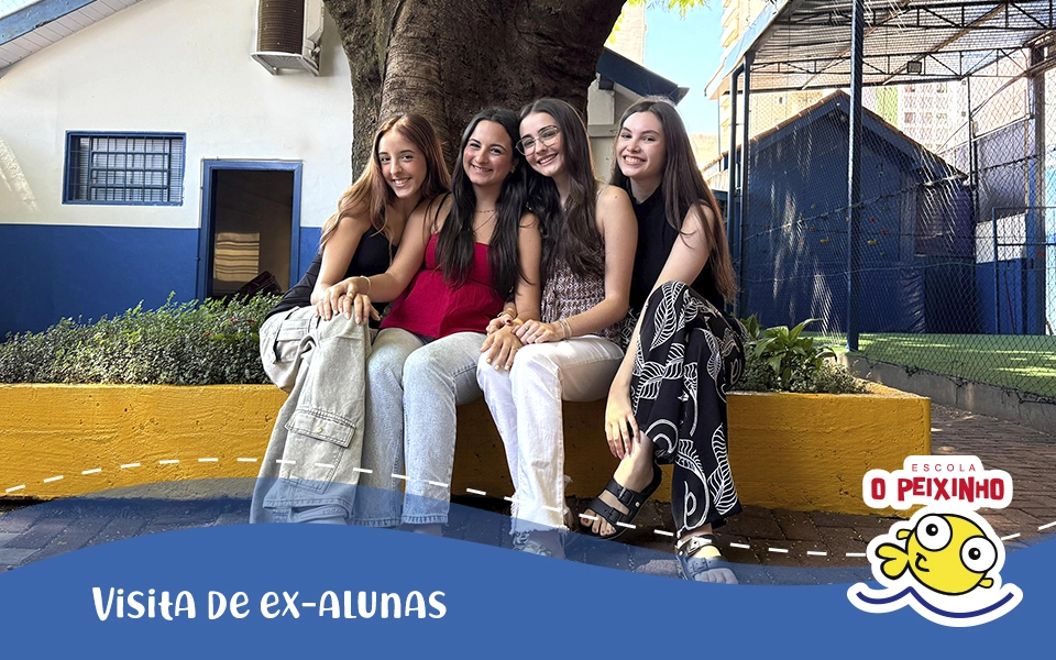 As quatro amigas começaram a estudar n’O Peixinho aos dois anos de idade e seguiram juntas até o 5º Ano do Ensino Fundamental. Aqui construíram muito mais do que aprendizados escolares, criaram vínculos que atravessaram o tempo. Mesmo depois de seguirem para escolas diferentes, permaneceram unidas. Nas férias, ao menos duas vezes ao ano, elas se encontram para matar a saudade e atualizar as histórias.